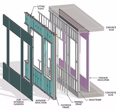 - Multi-Layer System: Thermally Broken Framing systems, insulation, sheathing, and finishes in one.
